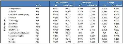 Conversely, if you think the Federal Reserve’s actions will boost reserves meaningfully, our article “QE Is Back” may offer a practical trading blueprint for the first few months of 2026. The article identifies which stock market indexes, sectors, and factors are strongly correlated with bank reserves. The table below, from the article, indicates that transportation, materials, consumer-discretionary, financial, and technology stocks could benefit most from a reserve increase. Conversely, the utilities, energy, and staple sectors offer little correlation.
