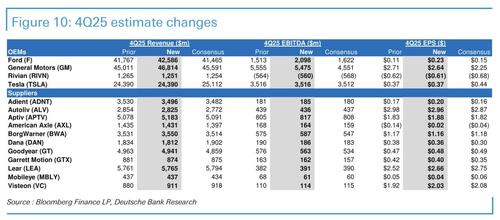 At a high level, the bank is cautious on global production growth despite more optimistic industry forecasts. Deutsche Bank sees downside risks tied mainly to China, where changes to government trade-in subsidies are expected to hit lower-priced vehicles hardest. While North America and Europe may improve modestly, the team does not believe those regions can fully offset a potential slowdown in China. As a result, suppliers are likely to guide conservatively for 2026, particularly in the first half of the year, even though fourth-quarter results should generally meet or exceed expectations.