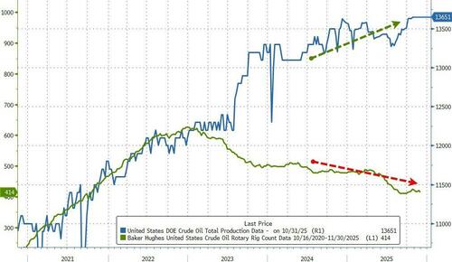 True, U.S. oil production has continued to grow to record highs this year, as output lags the global price moves with several months, and producers bet on efficiency and selective capital allocation to preserve value for shareholders at oil prices that are very close to, or even below, their breakeven price to profitably drill a new well.