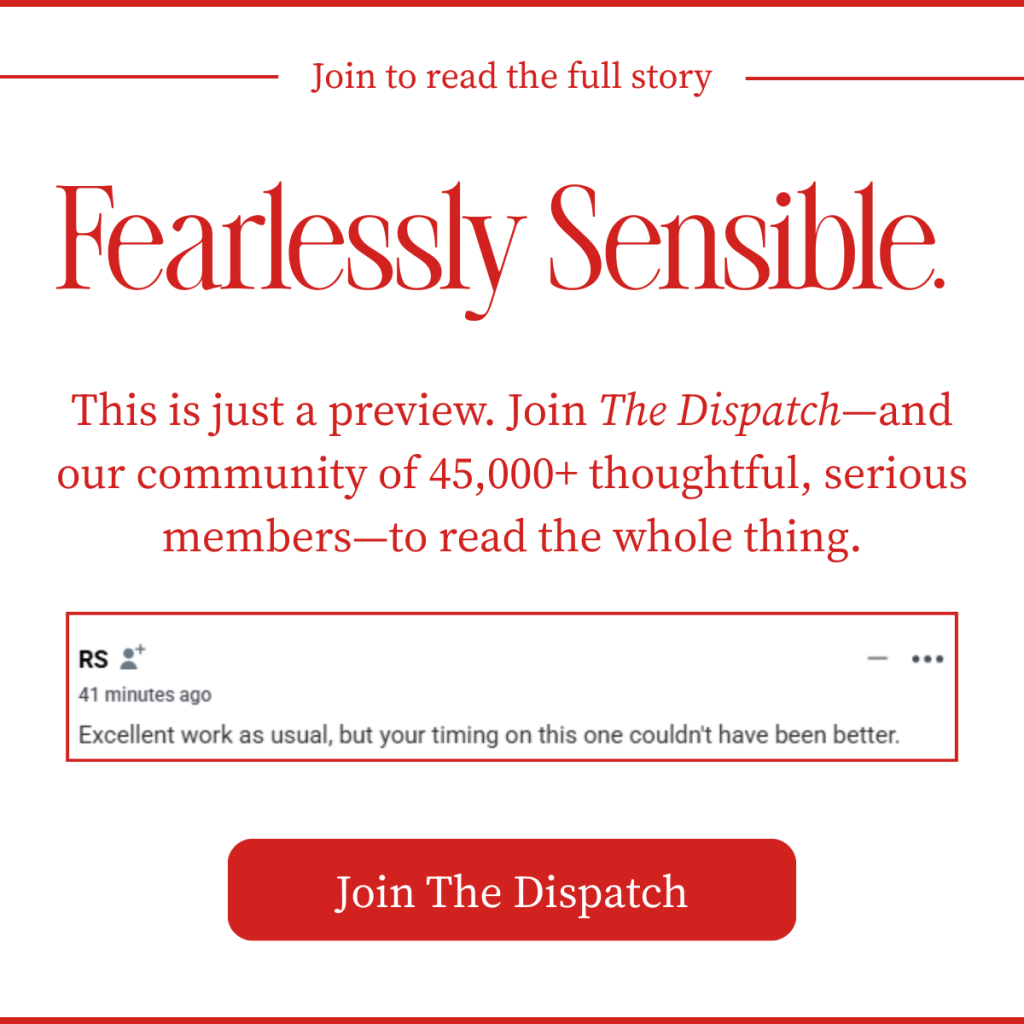 You are receiving the free, truncated version of Boiling Frogs. To read Nick’s full newsletter—and unlock all of our stories, podcasts, community benefits, and our newest feature, Dispatch Voiced, which allows you to listen to our written stories in your own podcast feed—join The Dispatch as a paying member.