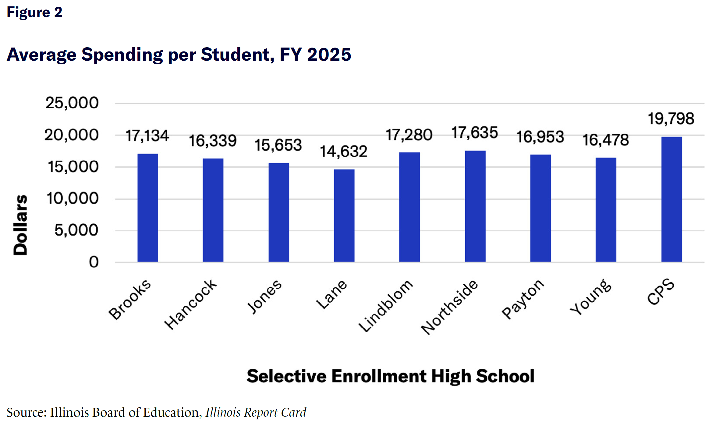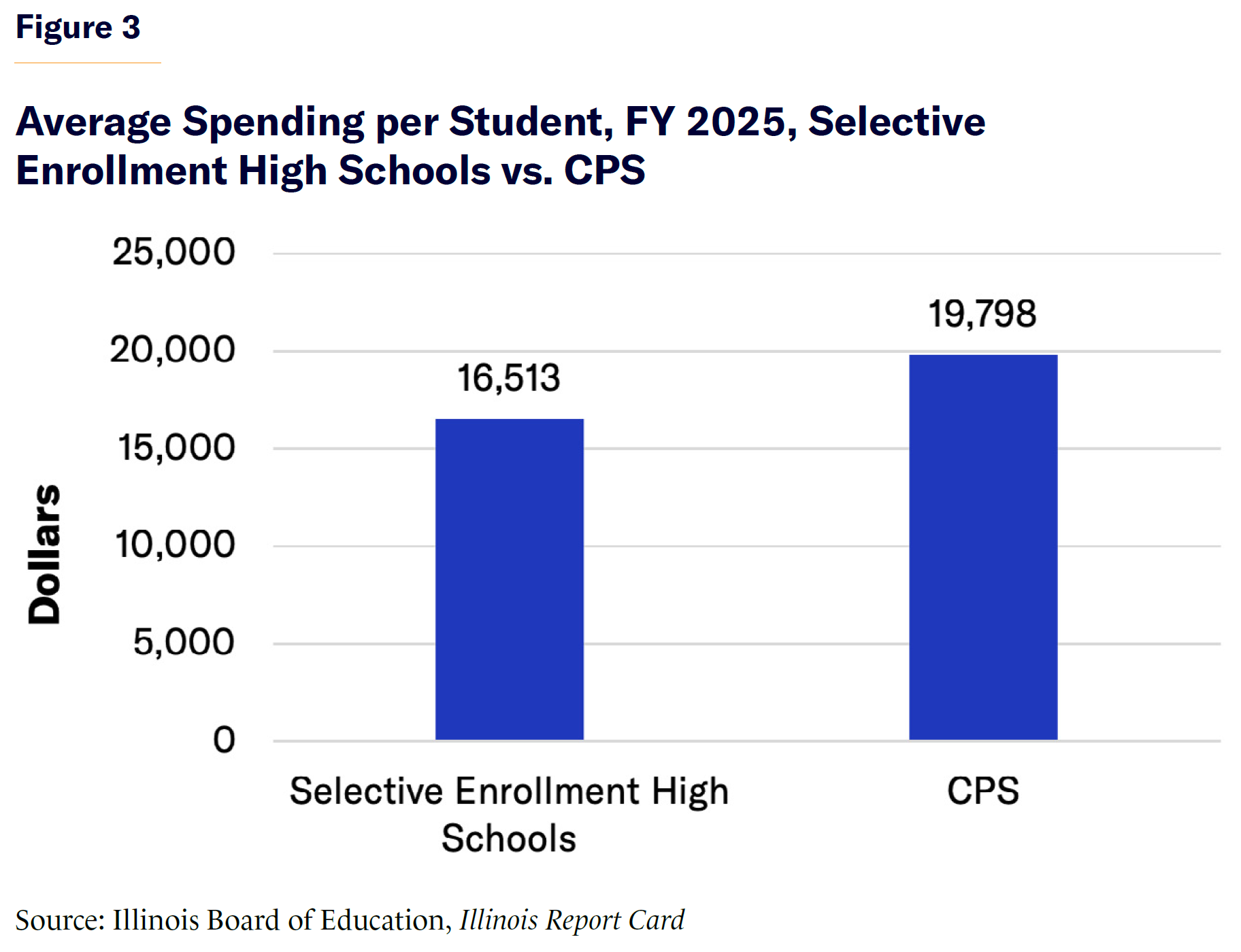 - On average, CPS spends $3,285 more per student in nonselective schools than in the top eight selective enrollment high schools—and delivers far worse results.