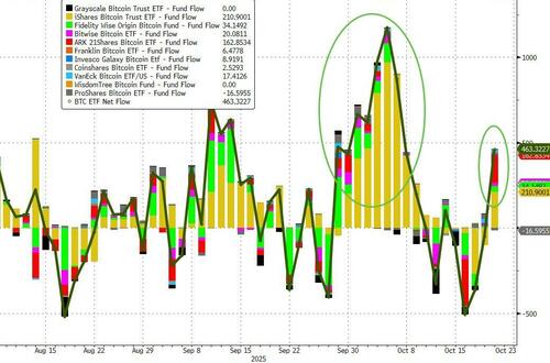 Bitcoin ETFs recorded a sharp rebound in flows this week after several days of politically driven outflows.
