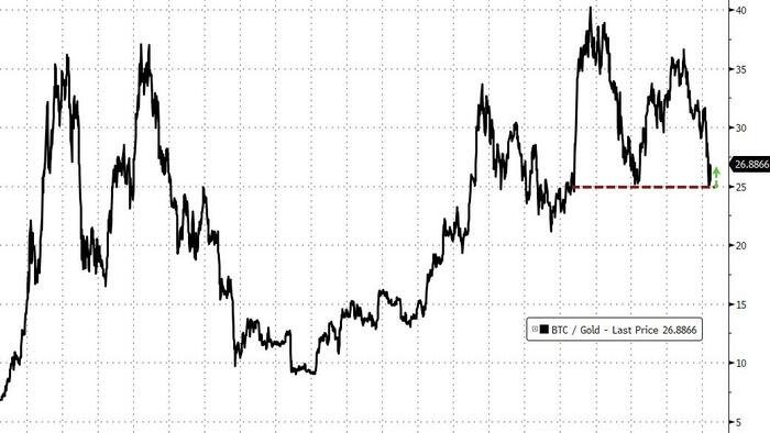 Gold has been outperforming Bitcoin a lot recently (as chart), something which has perhaps started to turn