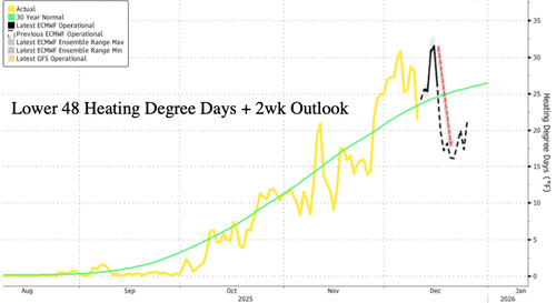 The warm-up will lower heating demand – hence sliding NatGas futs.