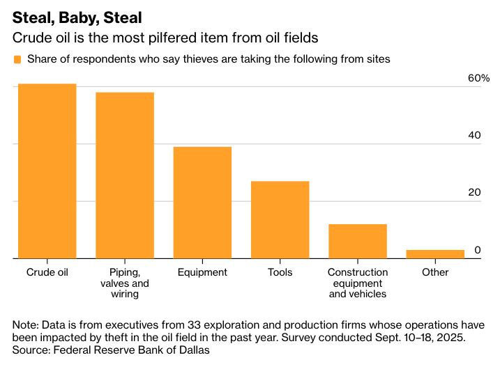 Bloomberg reports that oil and gas producers are losing at least $1 billion, if not more, per year due to oilfield theft in what the outlet describes as something straight out of a “Mad Max” movie.