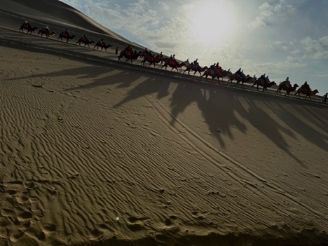 The camel caravan in the era of booming domestic tourism, outside Dunhuang. Photo: P.E.