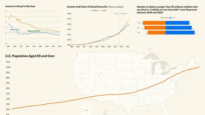 The data are in: The United States is getting older and welcoming fewer babies. This decades-long phenomenon is creating a demographic squeeze that some anticipate will affect nearly every aspect of the nation’s economy and infrastructure over the next couple of decades.