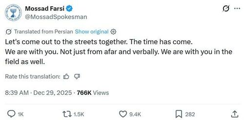 “Let’s come out to the streets together. The time has come. We are with you. Not just from afar and verbally. We are with you in the field as well,” the account, which Israeli media is treating as an official mouthpiece for the Mossad, said in Farsi.