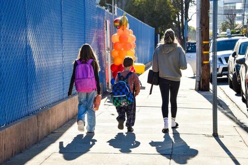 Students arrive at Nora Sterry Elementary School with a parent in Los Angeles on Jan. 15, 2025. The biggest barriers to retirement are housing costs, debt, inconsistent access to employer plans, and rising medical expenses, one expert said. Chris Delmas/AFP via Getty Images