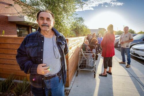 “Vicinte,” who had been waiting in line overnight, prepares to enter Fresno Mission for food in Fresno, Calif., on Oct. 1, 2025. A December Vanguard report found 58 percent of Americans will not be able to maintain their current lifestyle in retirement. John Fredricks/The Epoch Times