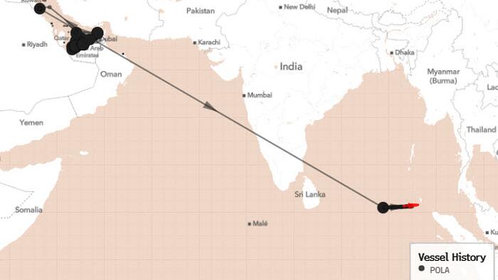 The suezmax Pola, which switched off its tracking system in the Persian Gulf on March 10, was detected again on Monday by the Automatic Identification System: it was located several thousand miles away.
