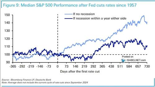 That signals the Fed is done draining cash from the system and may even be ready to begin loosening again. Furthermore, that shift removes a significant structural drag on equities. Furthermore, as noted, adding to that backdrop are further expected rate cuts, as early as next week. As shown, the market performs well during periods of a Federal Reserve rate-cutting cycle when the economy is not in a recession. Currently, although economic data remains weak, recession risks are muted.