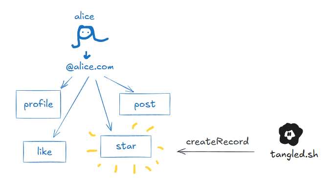 When I signed up for Tangled, I chose to use my existing @danabra.mov handle. That makes sense since identity can be shared between open social apps. What’s more interesting is that Tangled prefilled my avatar based on my Bluesky profile. It didn’t need to hit the Bluesky API to do that; it just read the Bluesky profile record in my repository. Every app can choose to piggyback on data from other apps.