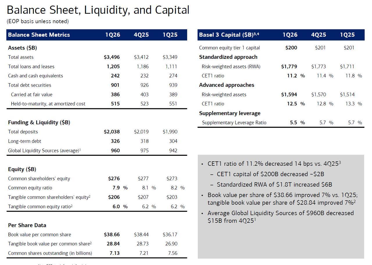 Last month, BofA Co-President Dean Athanasia said that he was feeling good about net interest income, expecting growth of at least 7%. Well, the final number was even stronger, and the bank reported NII of $15.7 billion, up 9% from the first quarter of 2025 (more below). Just as importantly, BofA raised its full-year NII forecast, now expecting it to grow 6%–8%, up from previous estimates of 5%–7%, driven by strong first-quarter performance, and suggesting the Fed’s rate cuts won’t negatively impact the bank.