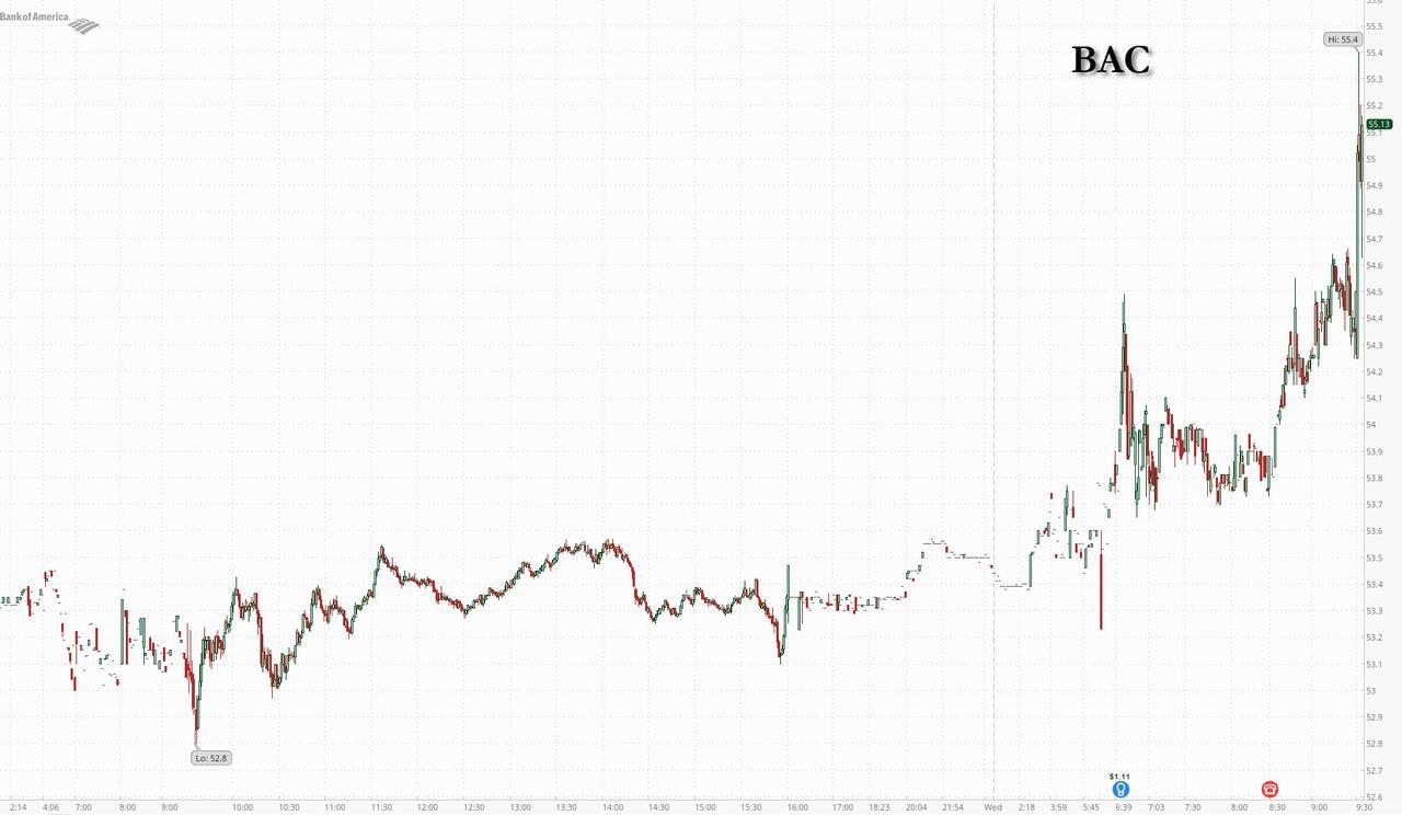 Commenting on the state of the US consumer, CEO Brian Moynihan said consumer spending points to a “resilient American economy”, while also warning of risks. Earlier, JPMorgan CEO Jamie Dimon said “the U.S. economy remained resilient in the quarter, with consumers still earning and spending and businesses still healthy.” Wells Fargo CEO Charlie Scharf: “While markets have been volatile, we still see continued resiliency in the underlying economy and the financial health of the consumers and businesses we serve remains strong, though the impact of higher oil prices will likely take some time to materialize.”
