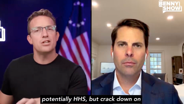 A video posted on X shows Benny Johnson telling Newsmax’s Rob Finnerty that if tens of millions of Americans were willing to stand in line for an experimental Covid vaccine, they can just as well stand in line for to reapply for food stamps.