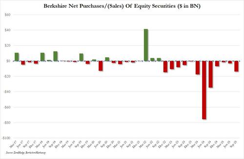 Turning to the company’s investment activities, for the 12th straight quarter, Berkshire sold more stocks than it bought for its $283.2 billion equity portfolio…