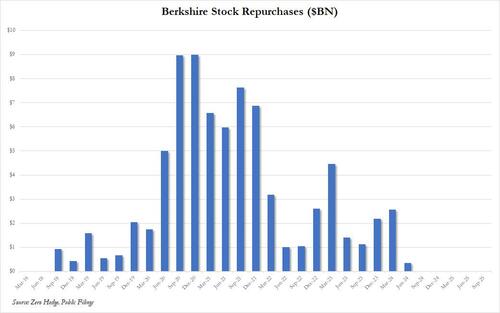 Also notable: after a burst of stock buybacks in the aftermath of the covid crash, Berkshire has not repurchased any of its own stock since Q2 2024…