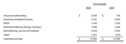 At the same time operating earnings jumped 34% to $13.5 billion from $10.1 billion, as the firm’s insurance underwriting profit more than tripled in the third quarter boosted by lower insurance losses, offsetting declines in the Insurance-investment income and Berkshire’s Energy company.