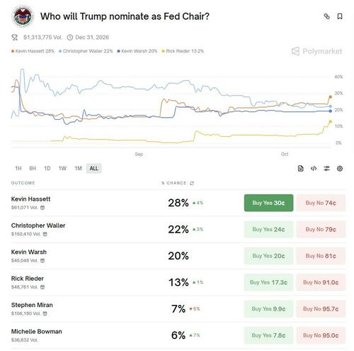 According to Polymarket, Hassett is the current favorite to be Powell’s replacement…