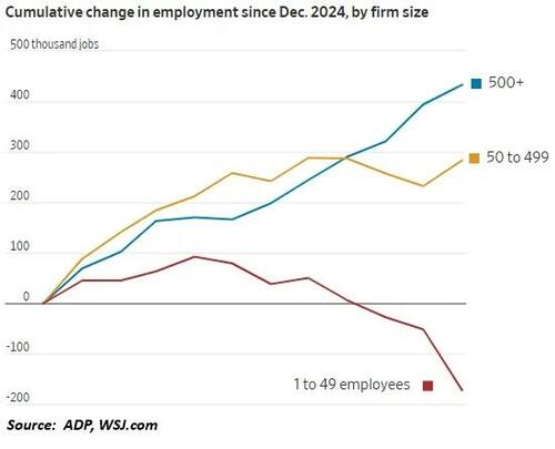 Here is employment hiring by large corporations–up–and small business employment–down.