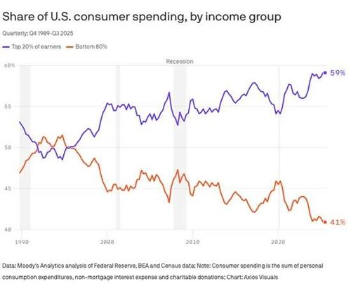 Monopolies and cartels have zero interest in the quality of our lives; they only care about friction that reduces their net income and obstacles to their expanding extraction. They have no interest in how the bottom 90% are faring, and only marginal interest in the top 10% who generate 50% of consumer spending.