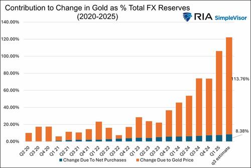 Here is the risk to be watching. If both gold and equities unwind together, investors seeking safety have limited options. Such leaves Treasury bonds, cash, and very defensive positioning as traditional havens no longer deliver. As the BIS highlighted, the risk is that if central banks and reserve managers, many of whom have invested in gold, find themselves in unfamiliar territory where both markets fall simultaneously, the reversal of their positioning could be swift and uncoordinated.