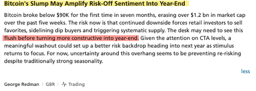 Redma continued, “The desk may need to see this flush before turning more constructive into year-end. Given the attention on CTA levels, a meaningful washout could set up a better risk backdrop heading into next year as stimulus returns to focus.”