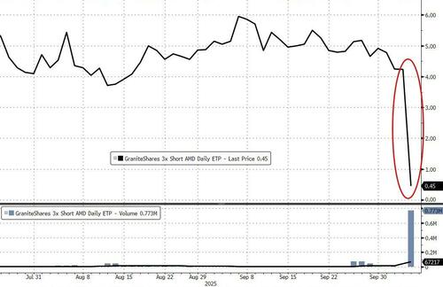 “We got our first termination event. The GraniteShares -3x AMD ETP in Europe is no longer. Forced termination, XIV-style…”