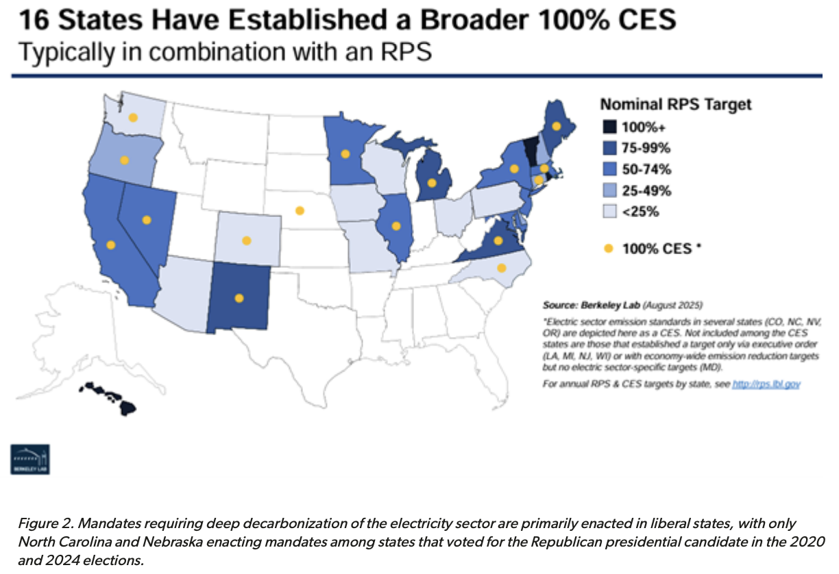 - Mitch Rolling and Isaac Orr, “States with Clean Energy Mandates Have Higher Rate Increases,” Energy Bad Boys, November 29, 2025