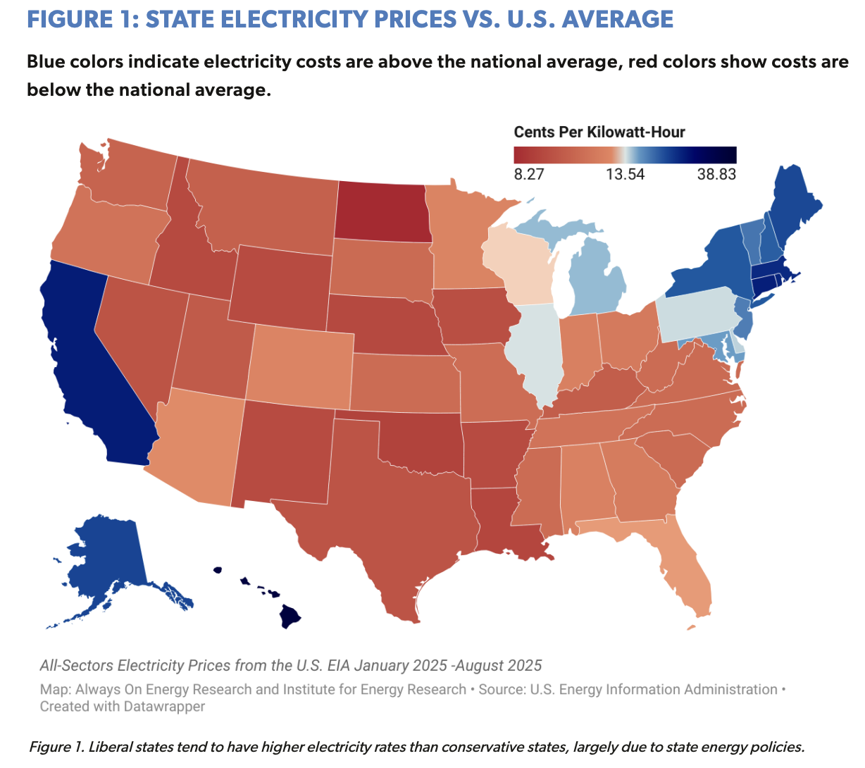 Americans pay dramatically different electric bills depending on which party controls their state capitol. High electricity prices are not an inevitability; they are a choice. And in state after state, they are a choice made by left-wing policymakers who have prioritized climate symbolism over working families’ budgets.