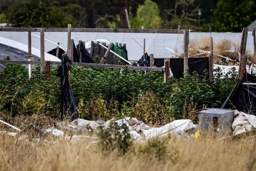 A marijuana grow operation near Covelo, Calif., on Oct. 9, 2025. Sheriff Kendall said many laborers at these grow sites live in poor conditions and may be working against their will. John Fredricks/The Epoch Times