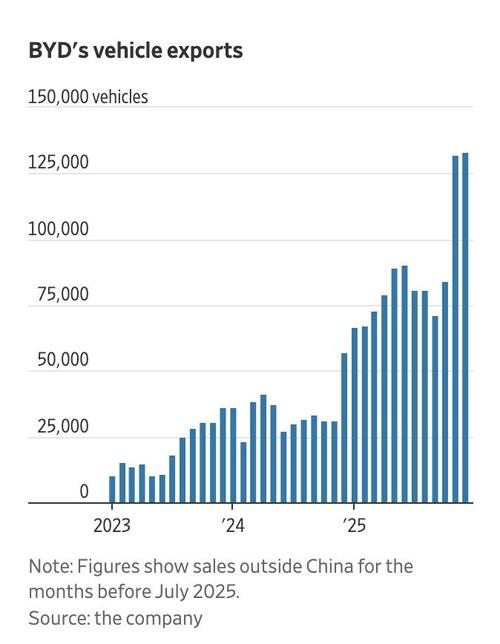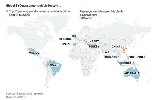 The WSJ writes that exports have become essential to absorbing this overcapacity. BYD is expanding aggressively, aiming for 2,000 European dealerships by 2026 and opening or planning factories in countries including Hungary, Turkey, Brazil, Thailand, and Indonesia. The company raised $5.6 billion to support its global push.