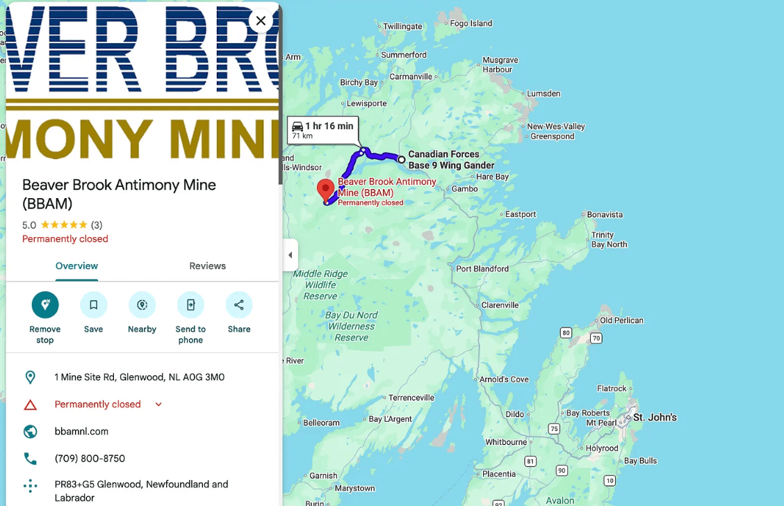 On March 12, 2026, Prime Minister Carney announced $35 billion in Arctic military and infrastructure spending — repackaging funds first earmarked by Justin Trudeau’s government in 2022 — and referred the Grays Bay Road and Port to his government’s Major Projects Office for fast-track approval. The same road MMG has identified as essential to unlocking the Izok Corridor. Canada’s sovereignty-asserting Arctic plan would, if executed, directly accelerate the strategic position of a Chinese state enterprise in Canada’s North. Carney’s plan also specifically designated 5 Wing Goose Bay in Labrador as a Deployed Operating Base — a forward platform for F-35s and allied NORAD training operations — deepening the military significance of a province that also hosts, an hour’s drive from 9 Wing Gander, the dormant Beaver Brook antimony mine in Chinese state hands.