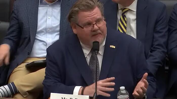 Michael Ball, CEO of the Electricity Information Sharing and Analysis Center and senior vice president at the North American Electric Reliability Corp., speaks at a hearing held by the House Energy and Commerce Committee’s energy subcommittee in Washington D.C. on Dec. 2, 2025
