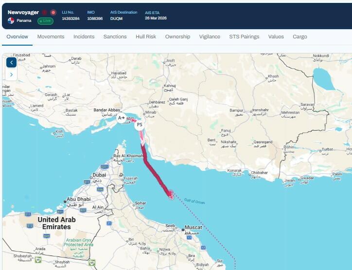 As previously reported, multiple oil tankers and containerships have made a break from the Persian Gulf in recent days. The Al Ruwais loaded naphtha from the UAE in early March and is now heading to Asia, while the Abu Dhabi-III is expected to arrive in India’s Vadinar port on Monday after also loading fuel at Ruwais. Given that a lot of ships go through with their signals off, it’s possible that other tankers will pop up having already left the Persian Gulf.