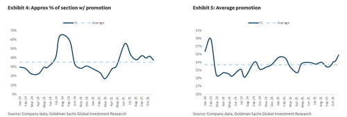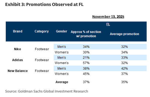 In a recent channel check, Goldman analysts led by Kate McShane visited a Foot Locker store in Jersey City, New Jersey, and found light traffic and elevated promotions.
