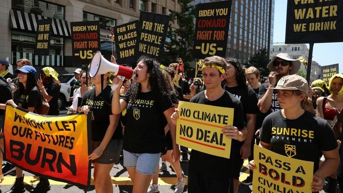 Organized by the Sunrise Movement, hundreds of young climate activists march to the White House to demand that U.S. President Joe Biden work to make the Green New Deal into law in Washington, DC, on June 28, 2021. Chip Somodevilla/Getty Images