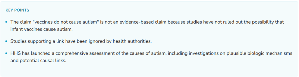 She went on to say, “Anyone repeating this harmful myth is misinformed or intentionally trying to mislead parents. We call on the CDC to stop wasting government resources to amplify false claims that sow doubt in one of the best tools we have to keep children healthy and thriving: routine immunizations.”