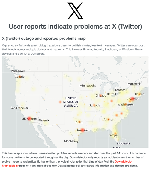 Website tracker Downdetector is currently showing a spike in reported X outages.