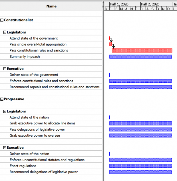 Mostly, constitutionalist legislators will just expeditiously pass a single overall-total appropriation, then move on to passing constitutional rules and sanctions for the rest of the year. Also, they will provide broken-windows policing as soon as it’s needed to protect our rights, by summarily impeaching.