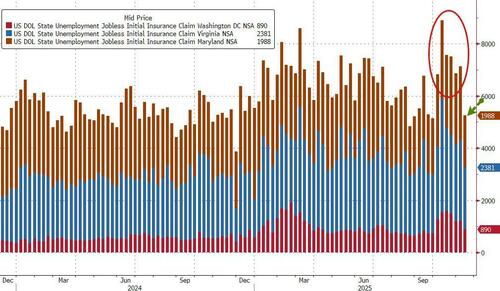 Likely thanks to the shutdown, we note that initial jobless claims for the ‘Deep Tristate’ fell significantly…