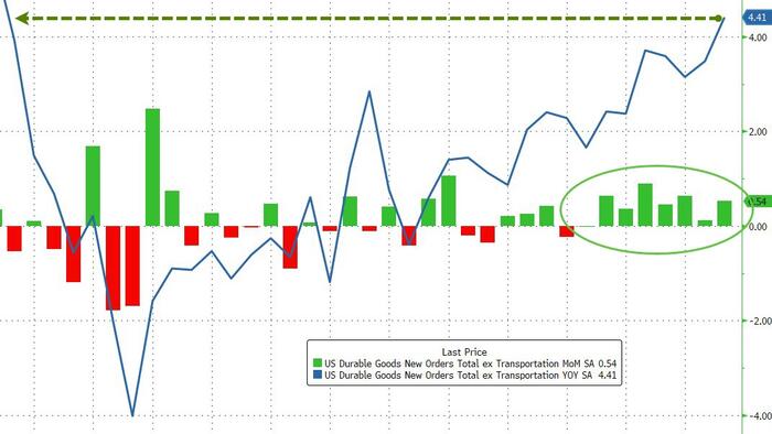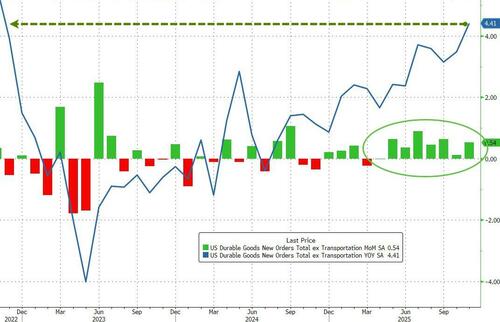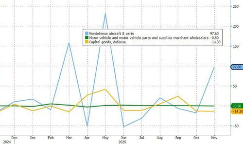 US Durable Goods Orders soared 5.3% MoM in (admittedly very lagged due to the shutdown) preliminary November data (significantly exceeding the 4.0% MoM expected and a major rebound from October’s 2.1% MoM decline), boosted by bookings for commercial aircraft and other capital equipment.