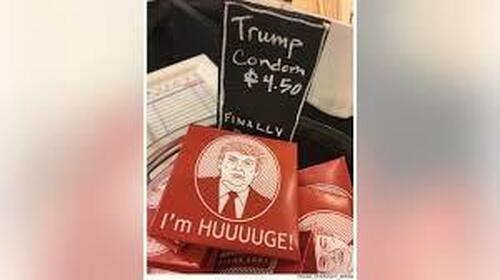 The Democrats included pictures of sex toys, novelty condom boxes with Trump’s face (saying “I’m Huuuge”) and even Epstein in a bathtub.