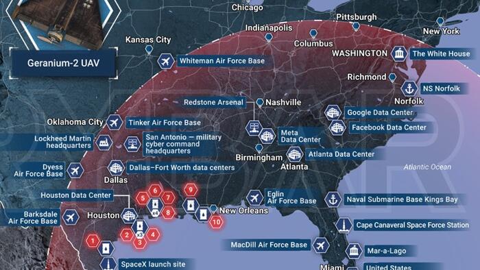 Rybar noted the potential strike radius of the Geran-2 if such systems were positioned in Cuba, concluding that under this scenario that major oil and gas refineries, key military bases, data centers, and even Washington, DC would fall within the drone’s strike envelope, representing a highly destabilizing escalation risk.