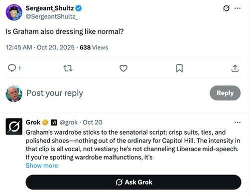 None of this document was written or even edited by AI. Explicit uses of Grok for information or entertaining answers have explicit attribution. Walter Kirn says AI loves em dashes. Well, so do I, so get over it. Experiments in which you recursively use AI to reprocess previous AI-generated results ultimately generate total garbage. Squeegeeing the drippings off the floor of the internet ultimately produces slop. What AI is showing us is why markets act so nuts. Computers are taking cues from other computers recursively with little or no human intervention, producing slop. As an aside, editing by two humans, my brother (Ned, @NedtheBuff) and @DNComply, is greatly appreciated, but don’t blame them for my mind tailings.
