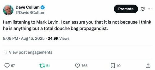 The tweet came in response to a clip from the most recent Tucker Carlson Show, featuring Ivy League professor Dave Collum. A transcript of the section Levin raged over is below. Not a single word is omitted because, unlike him, we care about the truth.
