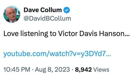 Victor conceded the quote and noted, “That’s about as close to lunacy as he said. It was an unfortunate remark, but he didn’t say while Hitler was alive, we should have joined the Nazis to fight Stalin.” FFS, Vic: I nailed it, and you know it. That is some serious bullshit thinking.
