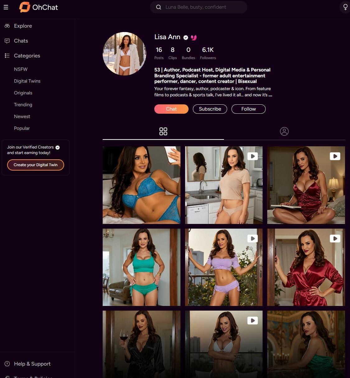 OhChat, a British startup that lets adult creators clone themselves with AI, has inked deals with Lisa Ann and Cherie DeVille to license their likenesses on the platform, basically creating a digital version of them in every possible way that can churn out custom sex scenes for paying customers.