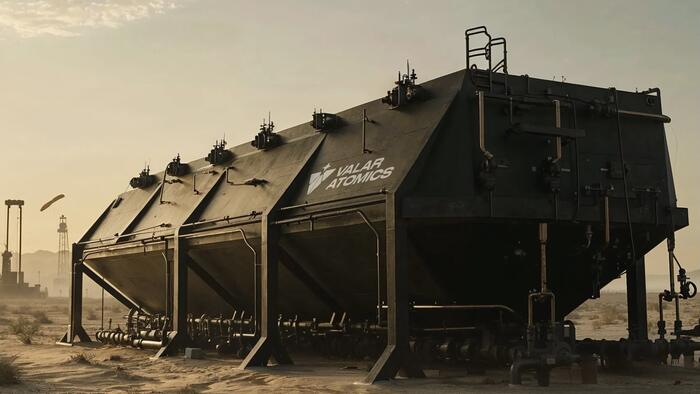 A rendering of a Valar Atomics microreactor deployed to an oil field